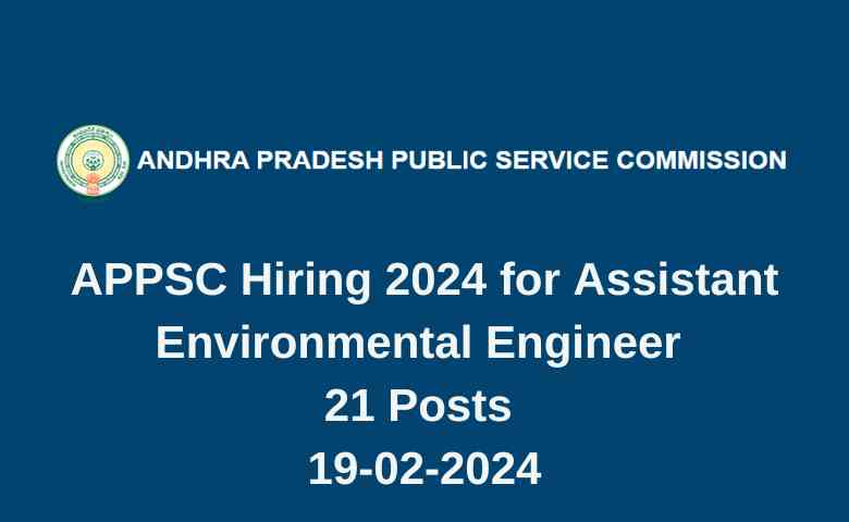 Applications are invited in APPSC Hiring online from eligible candidates for the post of Assistant Environmental Engineer in A.P. Pollution Control Board for a total of 21 vacancies in the scale of pay of Rs. 57,100–1,47,760 within the age group of 18 – 42 years as on 01.07.2023.