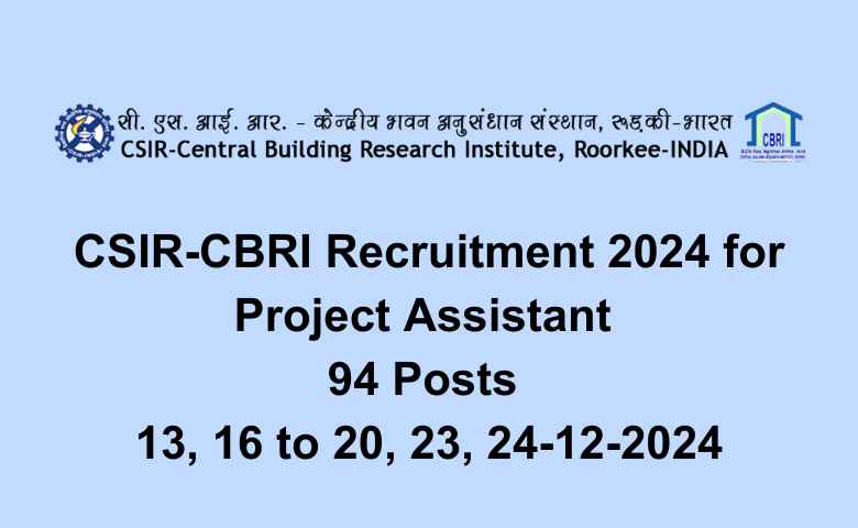 CSIR-CBRI Recruitment 2024 for Project Assistant.