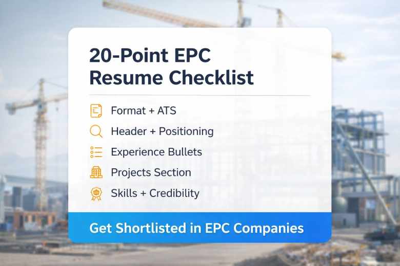 EPC shortlists don’t go to the longest resumes. They go to resumes that read like a project dashboard — showing scope, scale, package ownership, tools, and measurable outcomes.