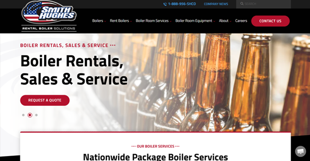 Smith Hughes offers rental boilers to industrial and commercial enterprises nationwide. Its turnkey solutions include delivery, installation, commissioning and training on an extensive inventory, ranging from different horsepower and pressure specifications. The boilers are available 24 hours a day, seven days a week, for short- or long-term use.