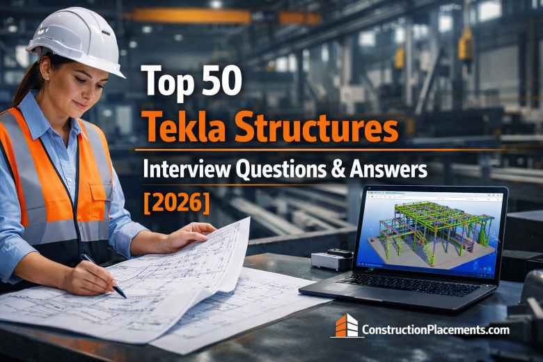 In this comprehensive guide, the team at ConstructionPlacements.com has curated 50 Tekla Structures interview questions and answers covering everything from the basic user interface to advanced BIM workflows, numbering, reports, shop drawings, connections, and more — all updated for 2026.