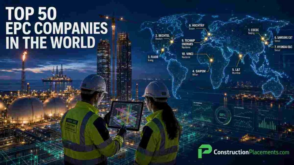 At the top of the industry, CSCEC, Bechtel, Fluor, Saipem, and L&T are reshaping how mega-projects are financed, designed, procured, and delivered — from Saudi Arabia’s NEOM and Qatar’s North Field LNG to U.S. Gulf Coast LNG terminals, India’s green hydrogen corridors, and Europe’s offshore wind farms. If you are an engineer, project manager, procurement specialist, planning engineer, or a fresher entering the construction industry, knowing the top 50 EPC companies in the world 2026 is essential — these firms set hiring benchmarks, define salary ceilings, and drive the certifications that matter.